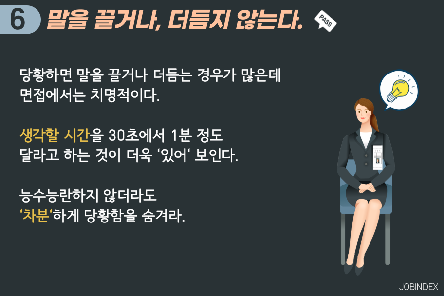 당황하면 말을 끌거나 더듬는 경우가 많은데 면접에서는 치명적이다.