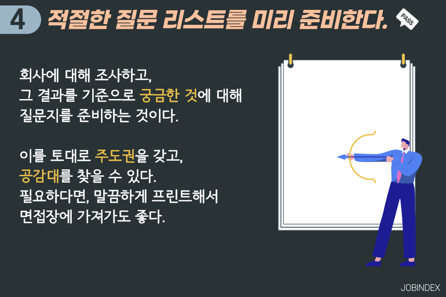 회사에 대해 조사하고, 그 결과를 기준으로 궁금한 것에 대해 질문지를 준비하는 것이다.