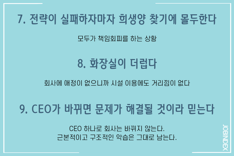 9. CEO가 바뀌면 문제가 해결될 것이라 믿는다