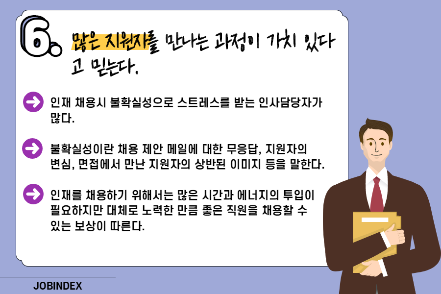 6. 많은 지원자를 만나는 과정이 가치 있다고 믿는다.