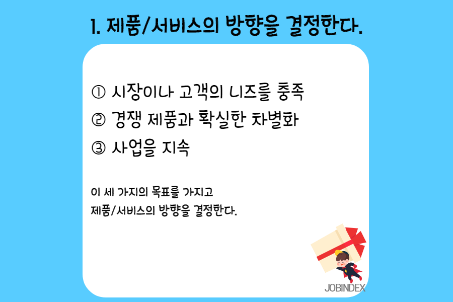 ① 제품/서비스의 방향을 실행에 옮길 구성원을 갖춘다.