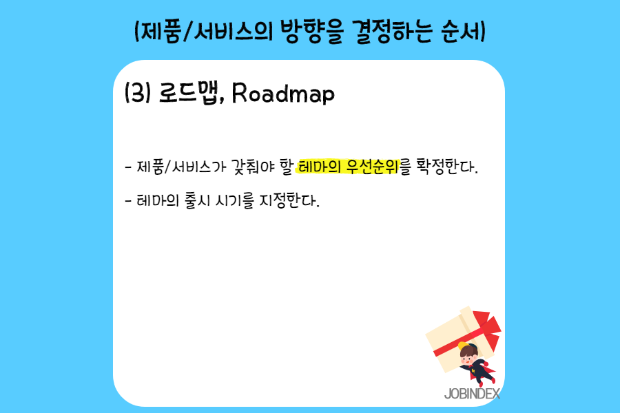 - 제품/서비스가 갖춰야 할 테마의 우선순위를 확정한다.