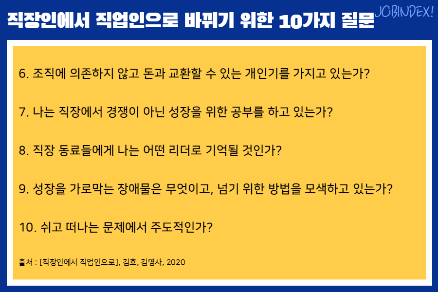 직장인에서 직업인으로 바뀌기 위한 10가지 질문