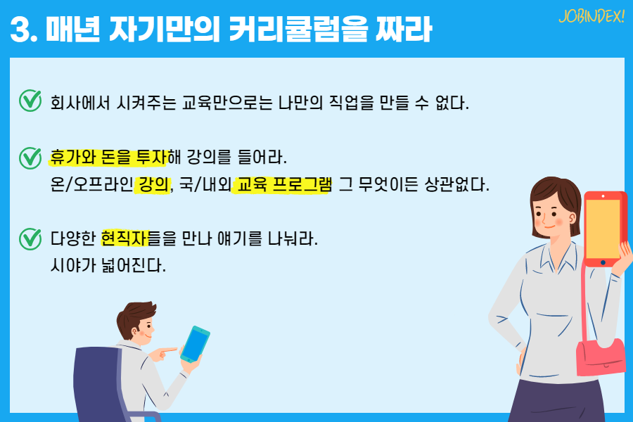 - 회사에서 시켜주는 교육만으로는 나만의 직업을 만들 수 없다.