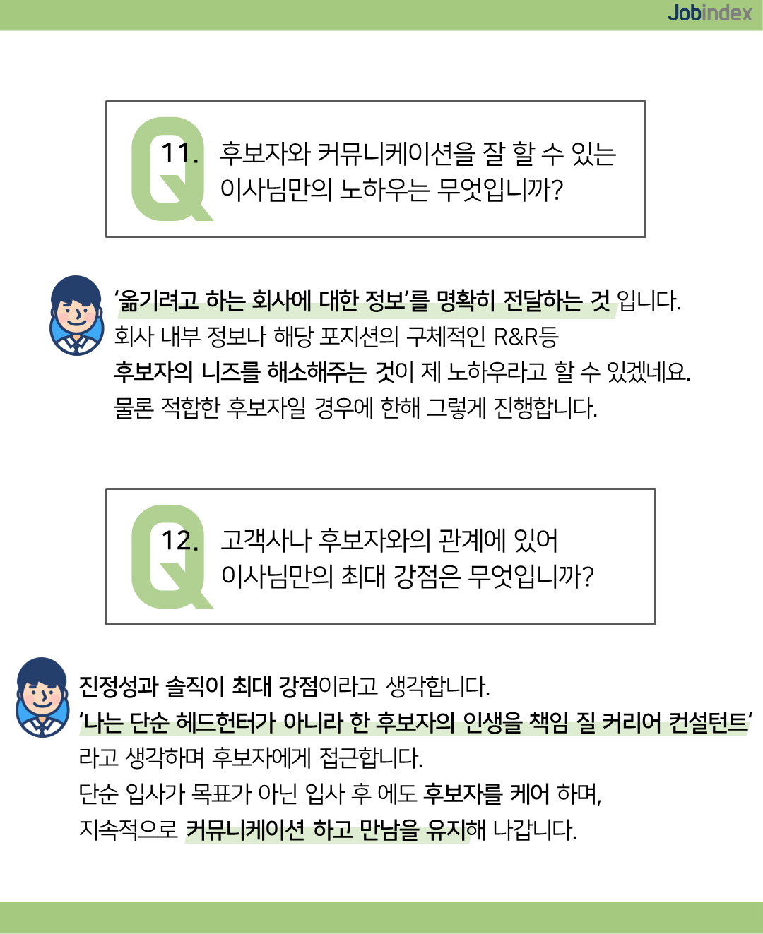11. Q. 후보자와 커뮤니케이션을 잘 할 수 있는 이사님만의 노하우는 무엇입니까?