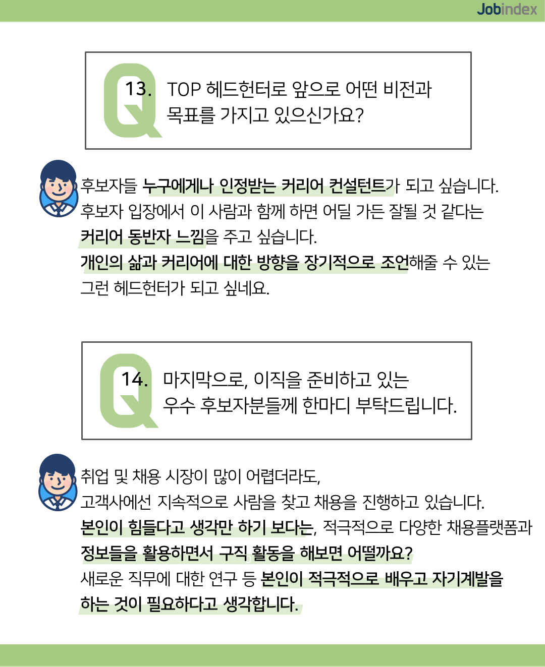 14. Q. 마지막으로, 이직을 준비하고 있는 우수 후보자분들께 한마디 부탁드립니다.