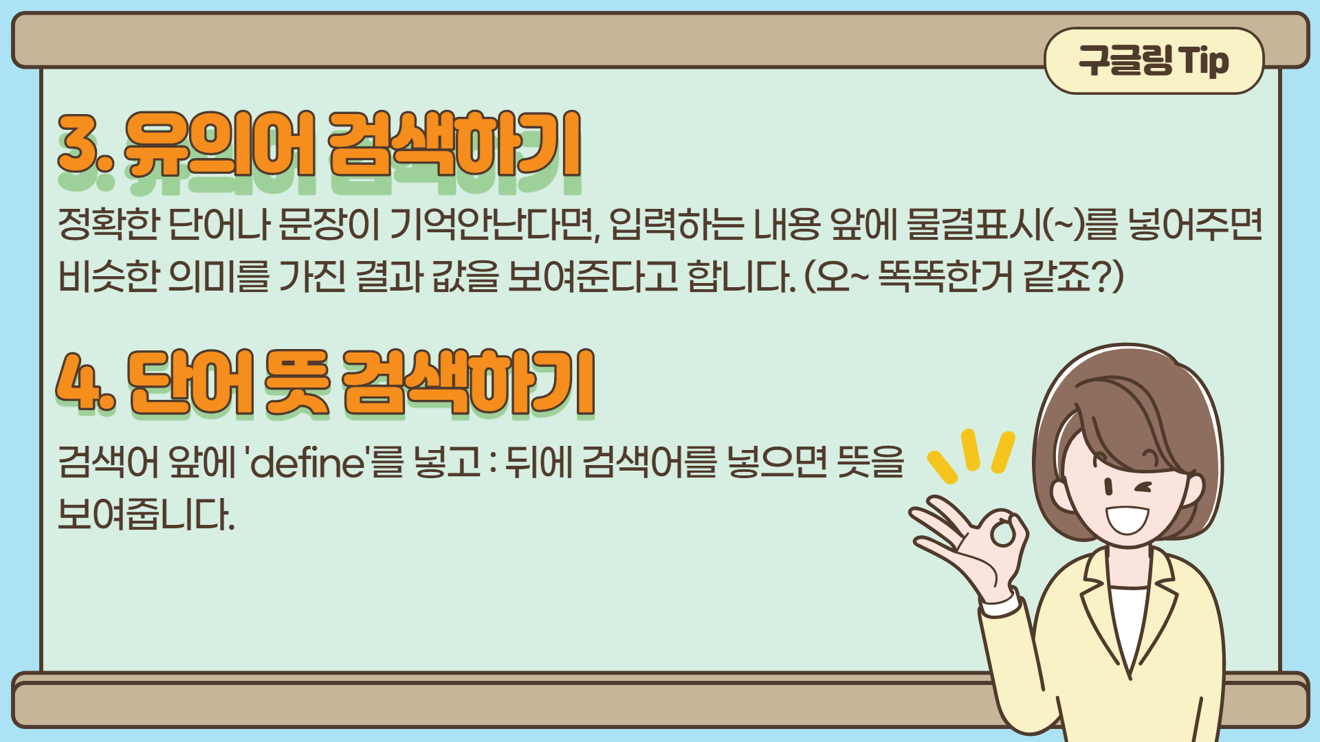 검색어 앞에 'define'를 넣고 : 뒤에 검색어늘 넣으면 뜻을 보여줍니다~