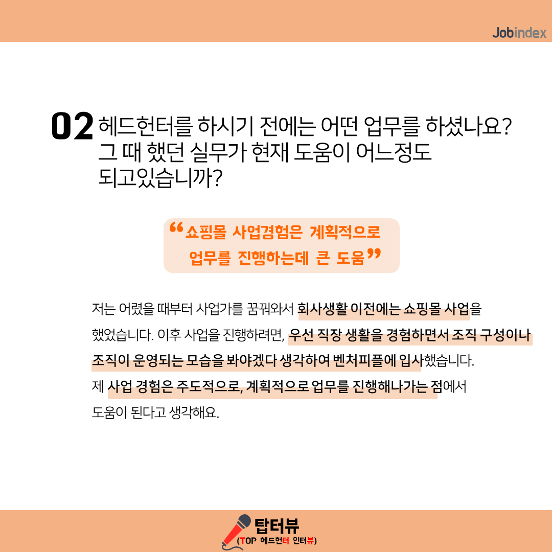 02. 헤드헌터를 하시기 전에는 어떤 업무를 하셨나요?