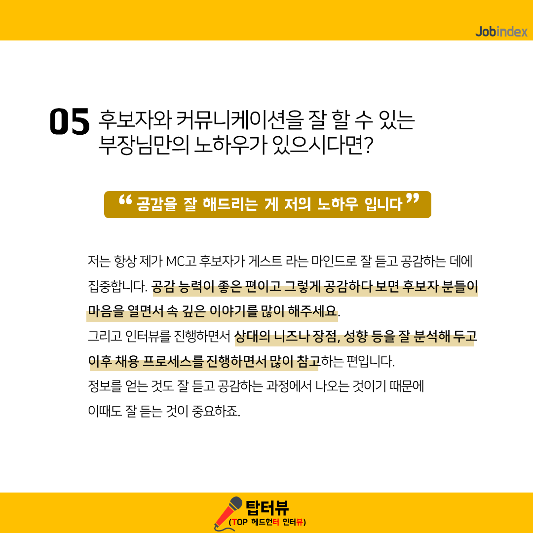 05. 후보자와 커뮤니케이션을 잘 할 수 있는 부장님만의 노하우가 있으시다면?
