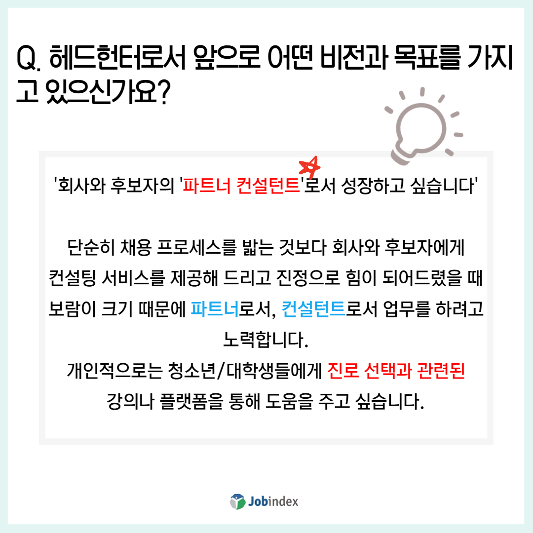 '회사와 후보자의 '파트너 컨설턴트'로서 성장하고 싶습니다'