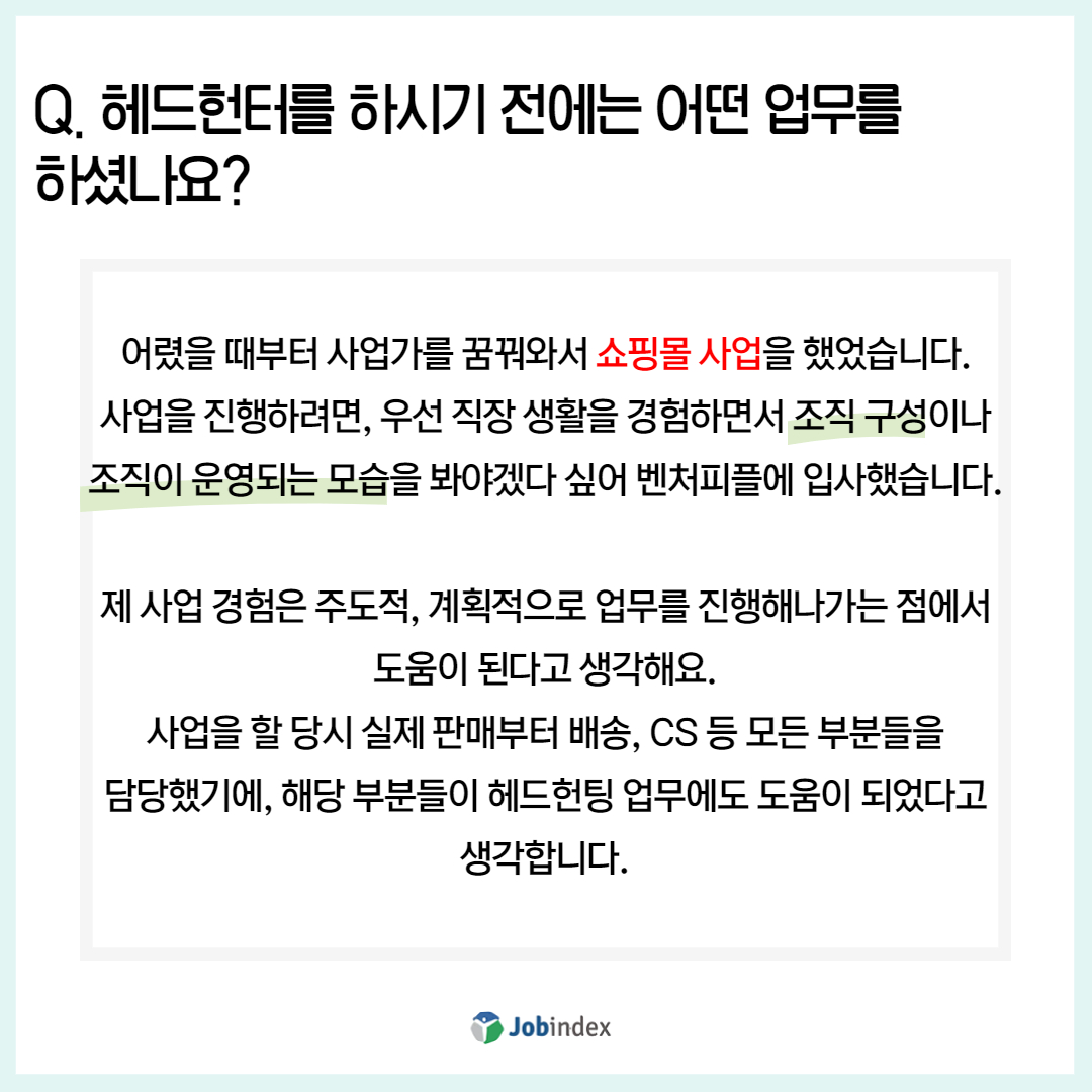 Q. 헤드헌터를 하시기 전에는 어떤 업무를 하셨나요?
