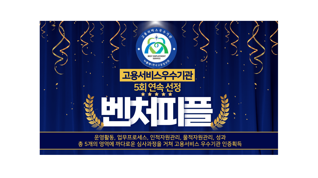 [ '벤처피플 Venture People' 고용서비스우수기관 5회연속선정 ]