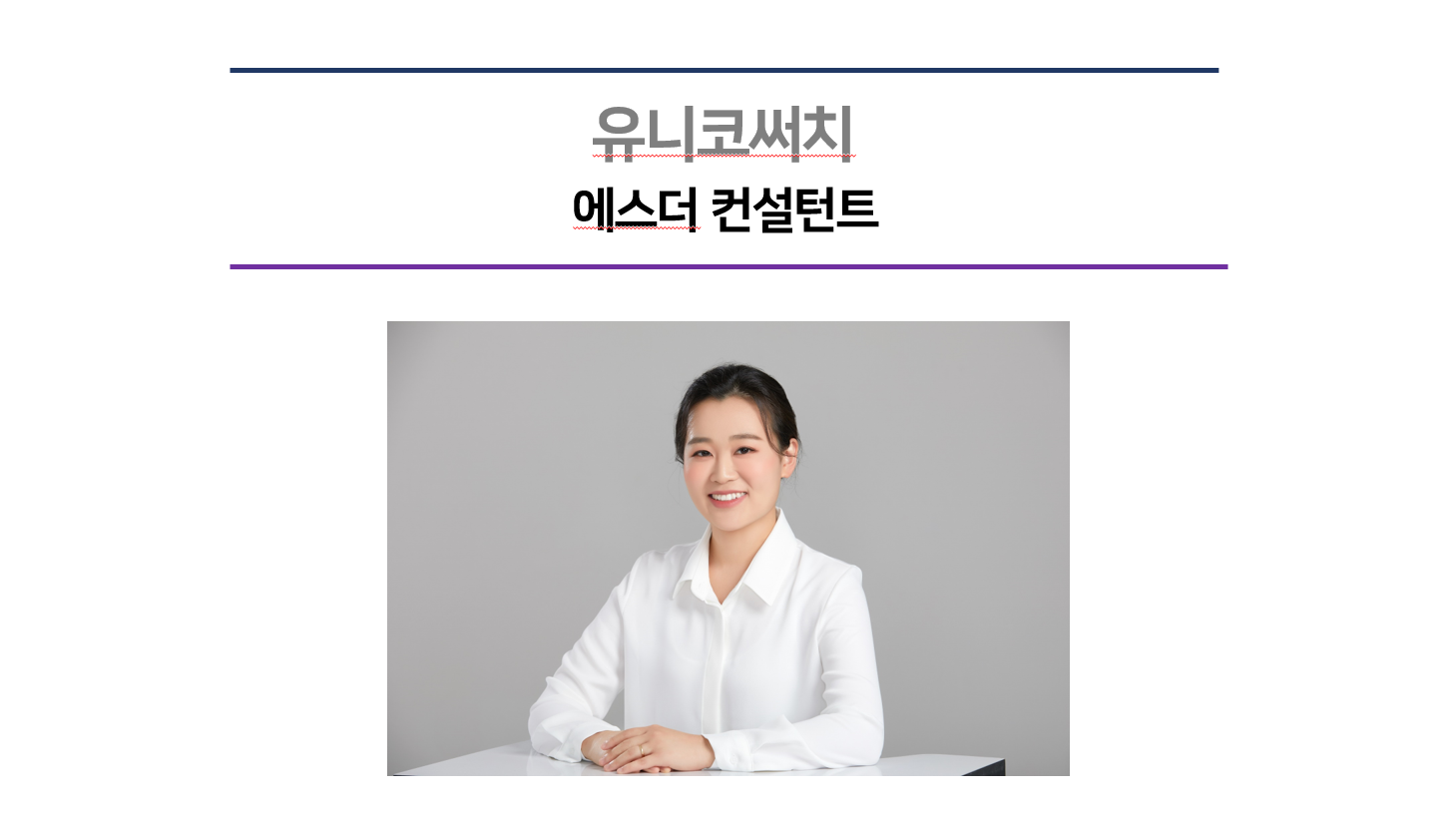 채용 컨설턴트로서 큰 자부심을 가지고 있으며, 본인의 열정을 다해 클라이언트와 후보자에게 긍정적인 에너지와 성과를 전달해주는 TOP 헤드헌터, 에스더 과장을 지금부터 만나보도록 하자.