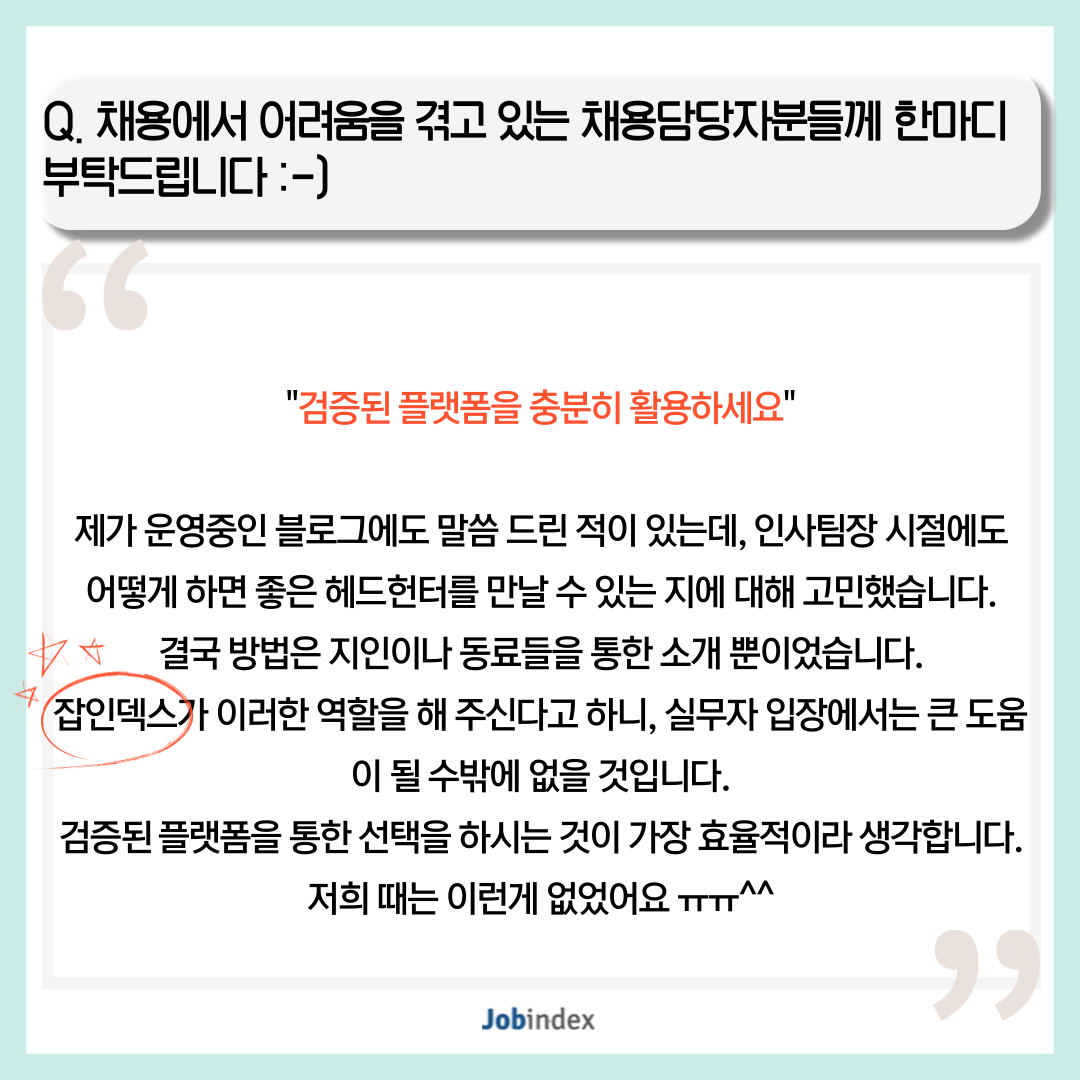 Q. 채용에서 어려움을 겪고 있는 채용담당자분들께 한마디 부탁드립니다 :-)