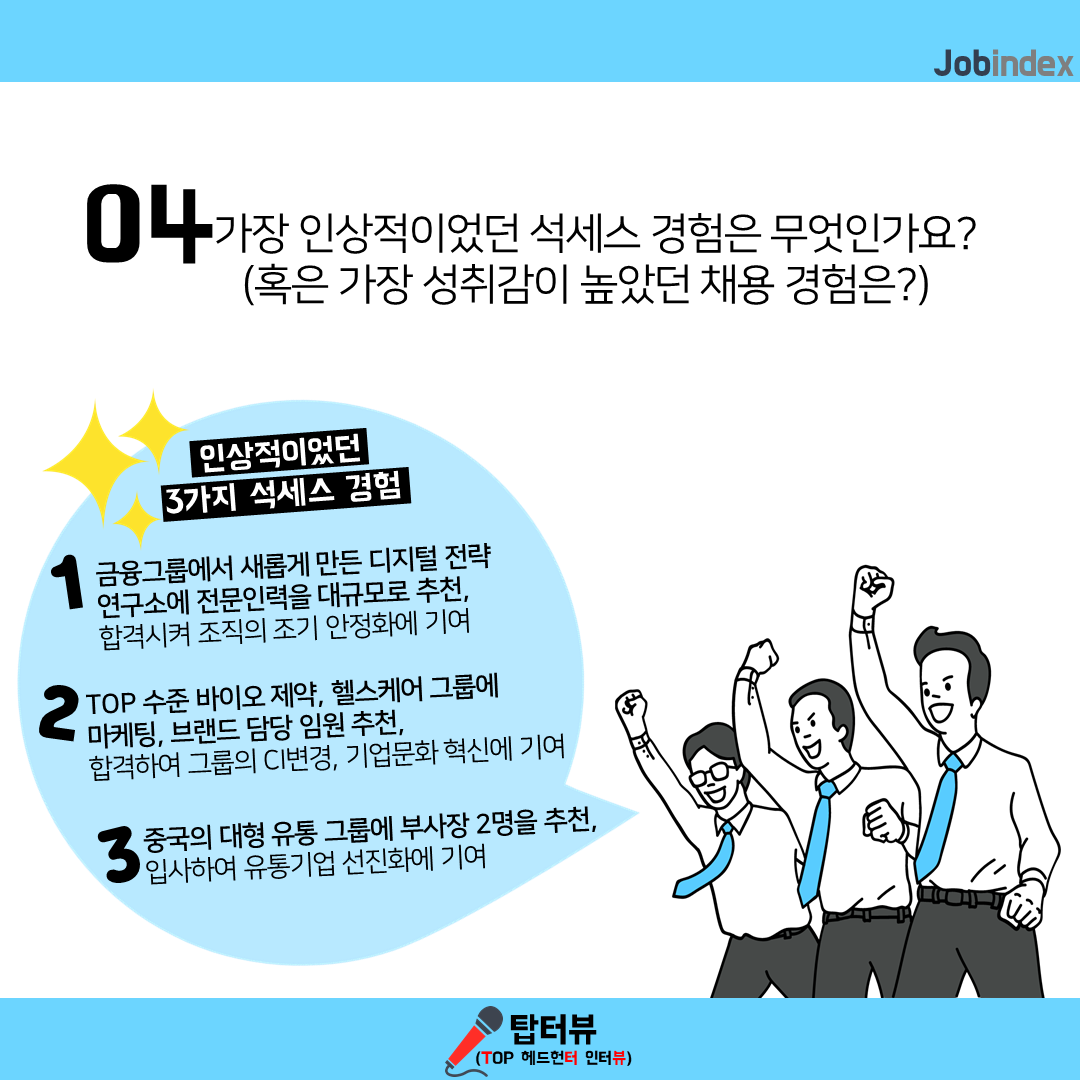 04. 가장 인상적이었던 석세스 경험은 무엇인가요? (혹은 가장 성취감이 높았던 채용 경험은?)
