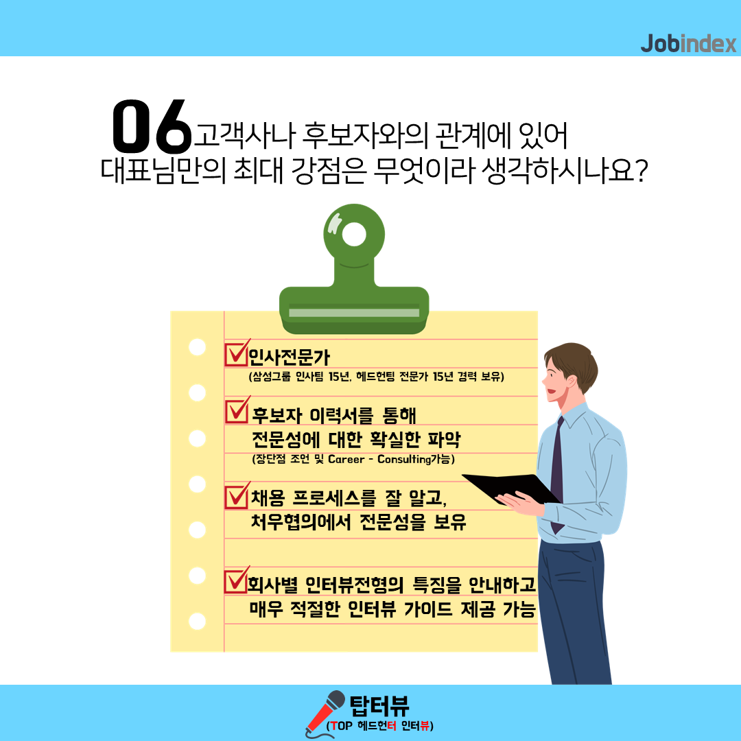 06. 고객사나 후보자와의 관계에 있어 대표님만의 최대 강점은 무엇이라 생각하시나요?