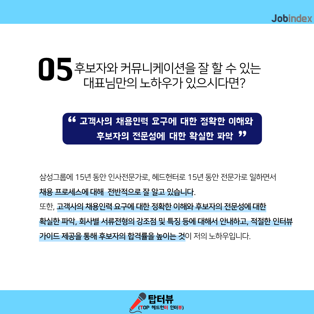 05. 후보자와 커뮤니케이션을 잘 할 수 있는 대표님만의 노하우가 있으시다면?
