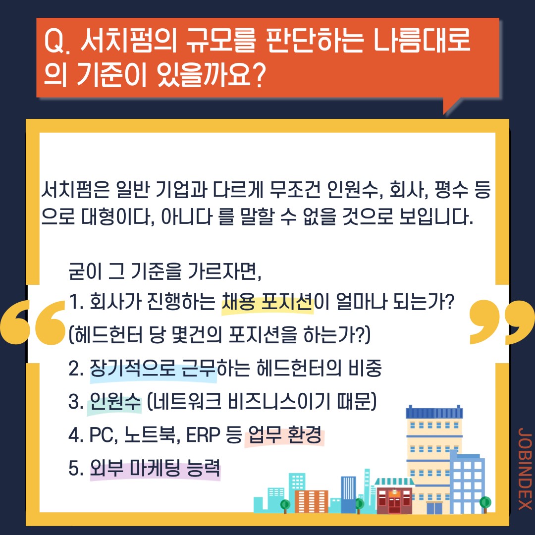 Q. 서치펌의 규모를 판단하는 나름대로의 기준이 있을까요?