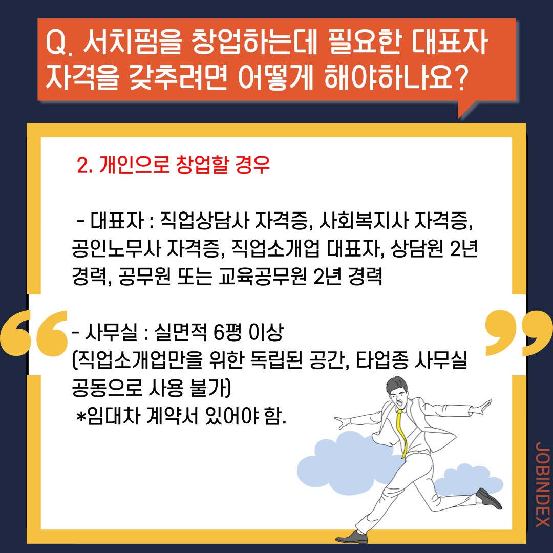 Q. 서치펌 개인 창업을 위한 조건은 무엇인지 알고 싶습니다.