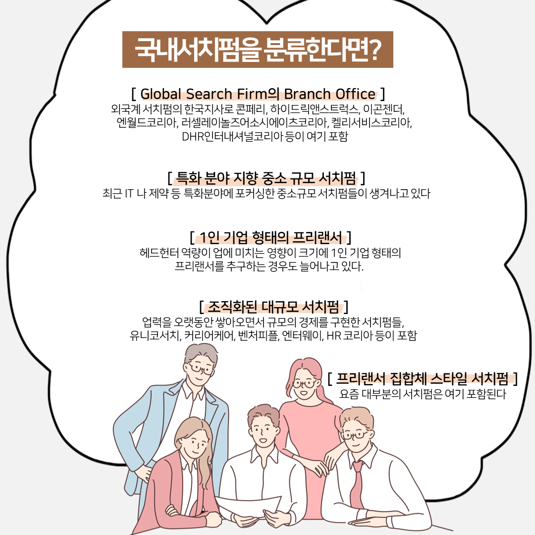 Q. 국내서치펌을 크게 분류 해보면 어떤식으로 해볼 수 있을까요?