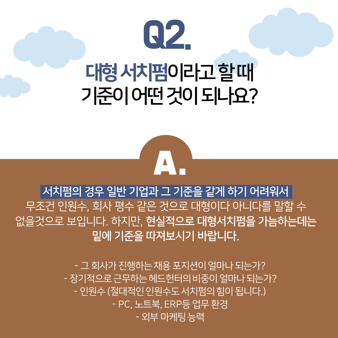 Q. 대형서치펌이라고 할 때 기준이 어떤 것이 되나요?