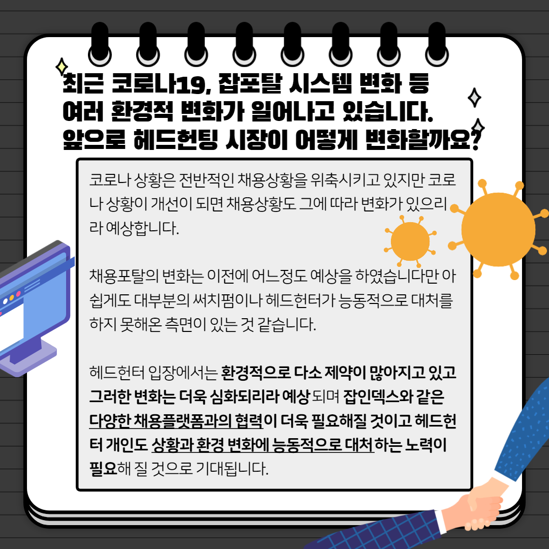 최근 코로나19, 잡포탈 시스템 변화 등 여러 환경적 변화가 일어나고 있습니다.