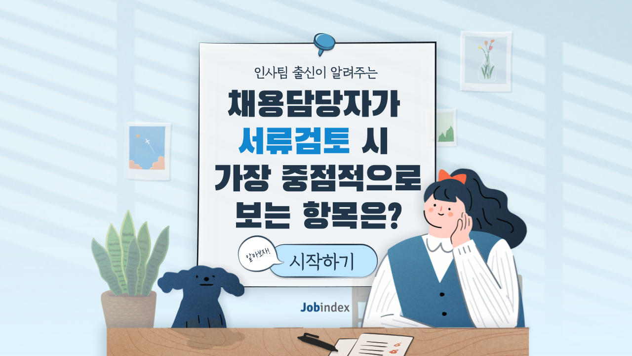 '채용담당자가 서류검토 시, 가장 중점적으로 보는 항목'에 대해서 함께 알아보아요 :-)