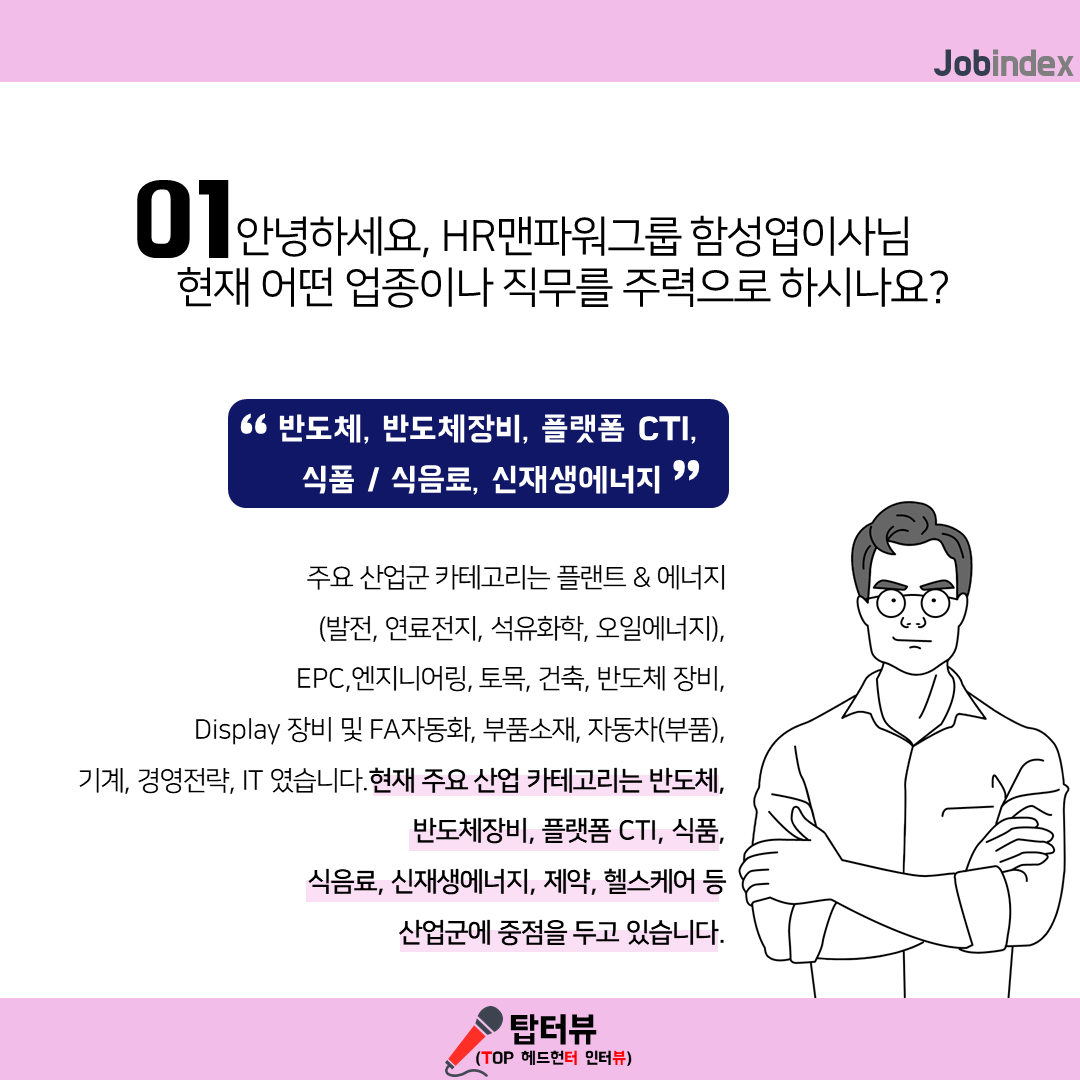 01. 안녕하세요, HR맨파워그룹 함성엽이사님 현재 어떤 업종이나 직무를 주력으로 하시나요?