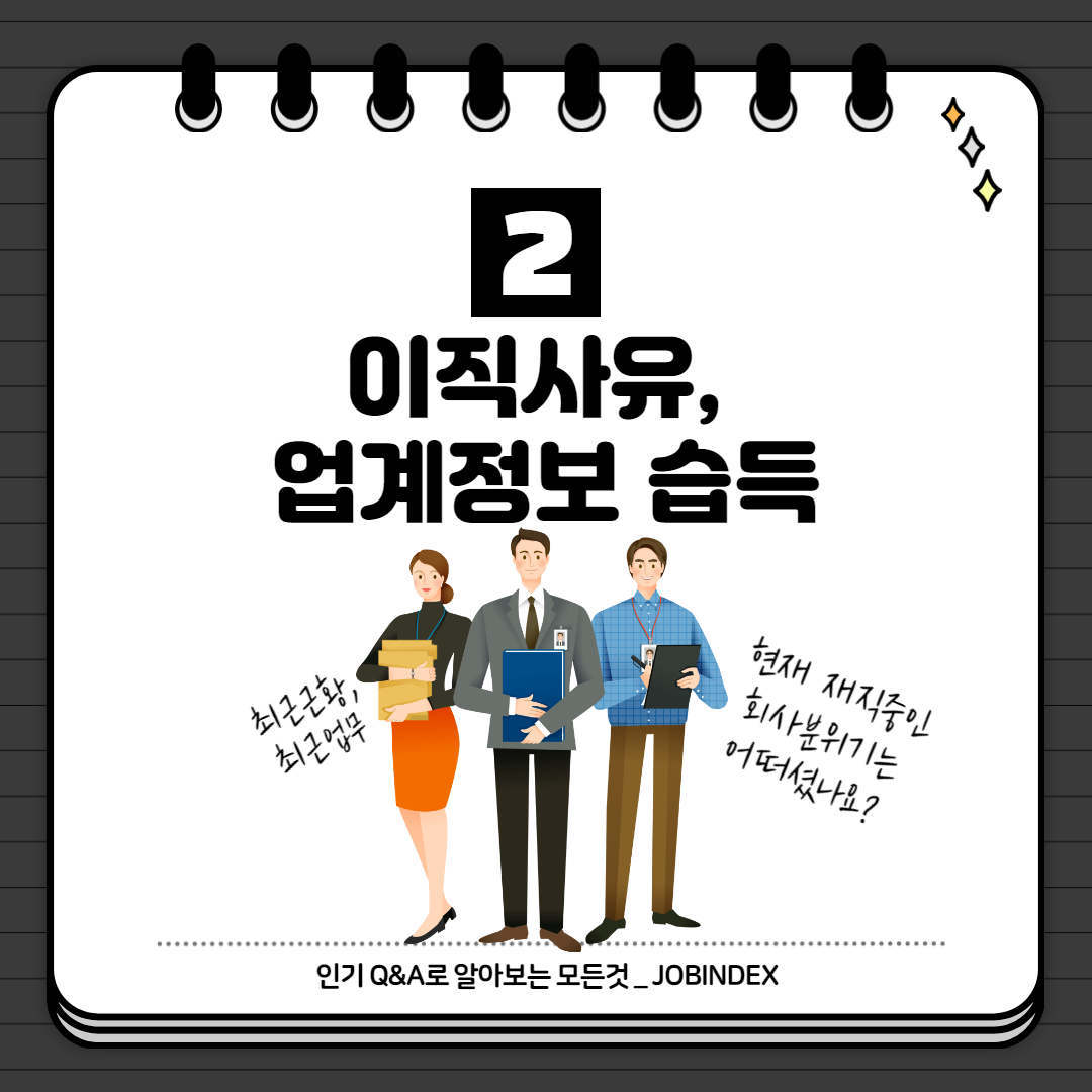 2. 최근 근황, 최근 업무, 현재 재직중인 회사 분위기 (이직사유, 업계 정보 습득)