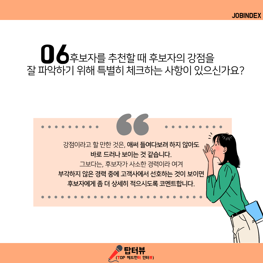 06. 후보자를 추천할 때 후보자의 강점을 잘 파악하기 위해 특별히 체크하는 사항이 있으신가요?