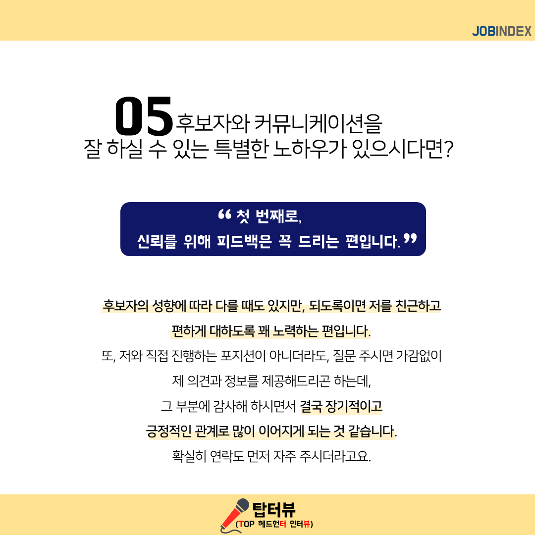 05. 후보자와 커뮤니케이션을 잘 하실 수 있는 특별한 노하우가 있으시다면?