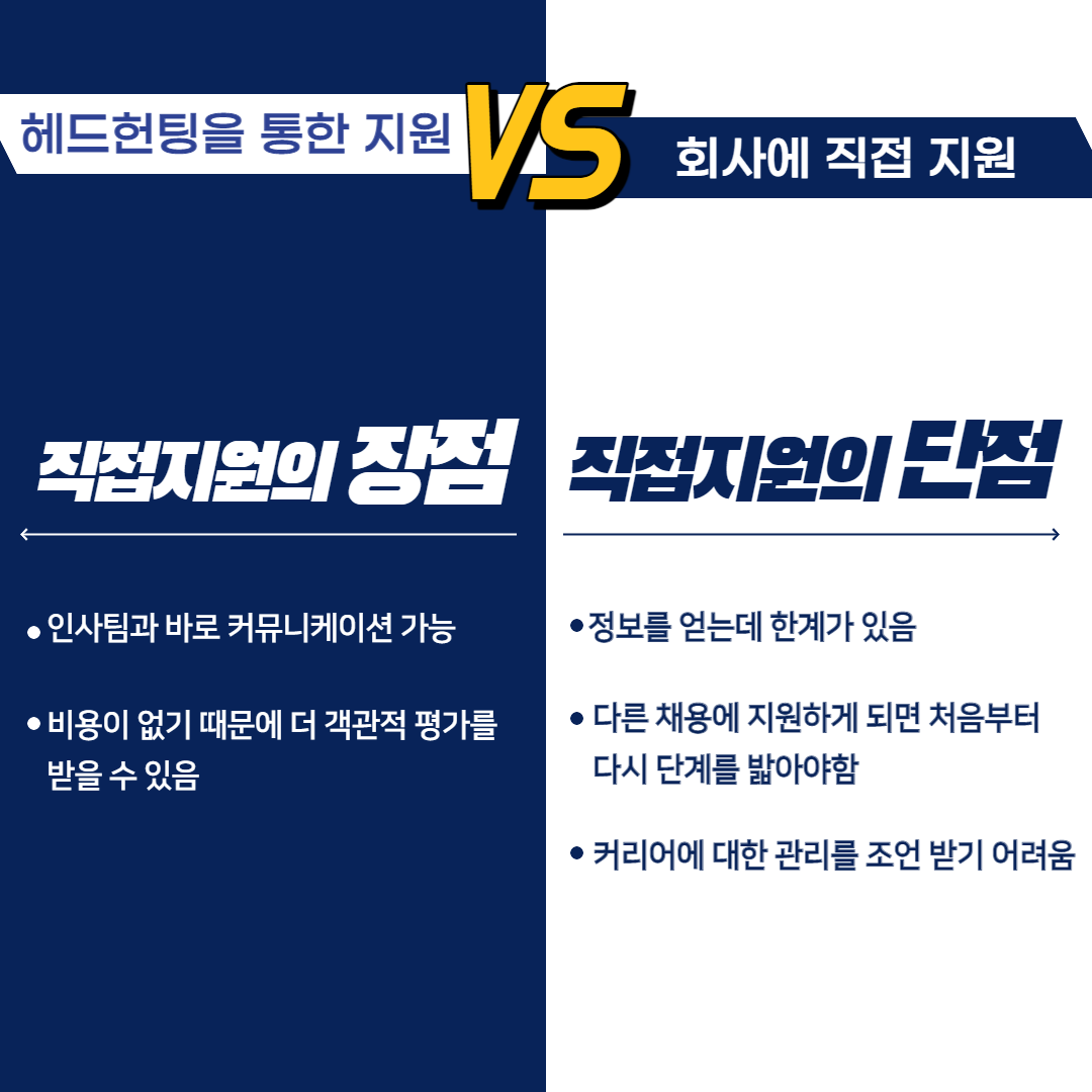 헤드헌팅을 통해 지원하는 것과 내가 직접 지원하는 것에는 어떤 장점과 단점이 있을까요?