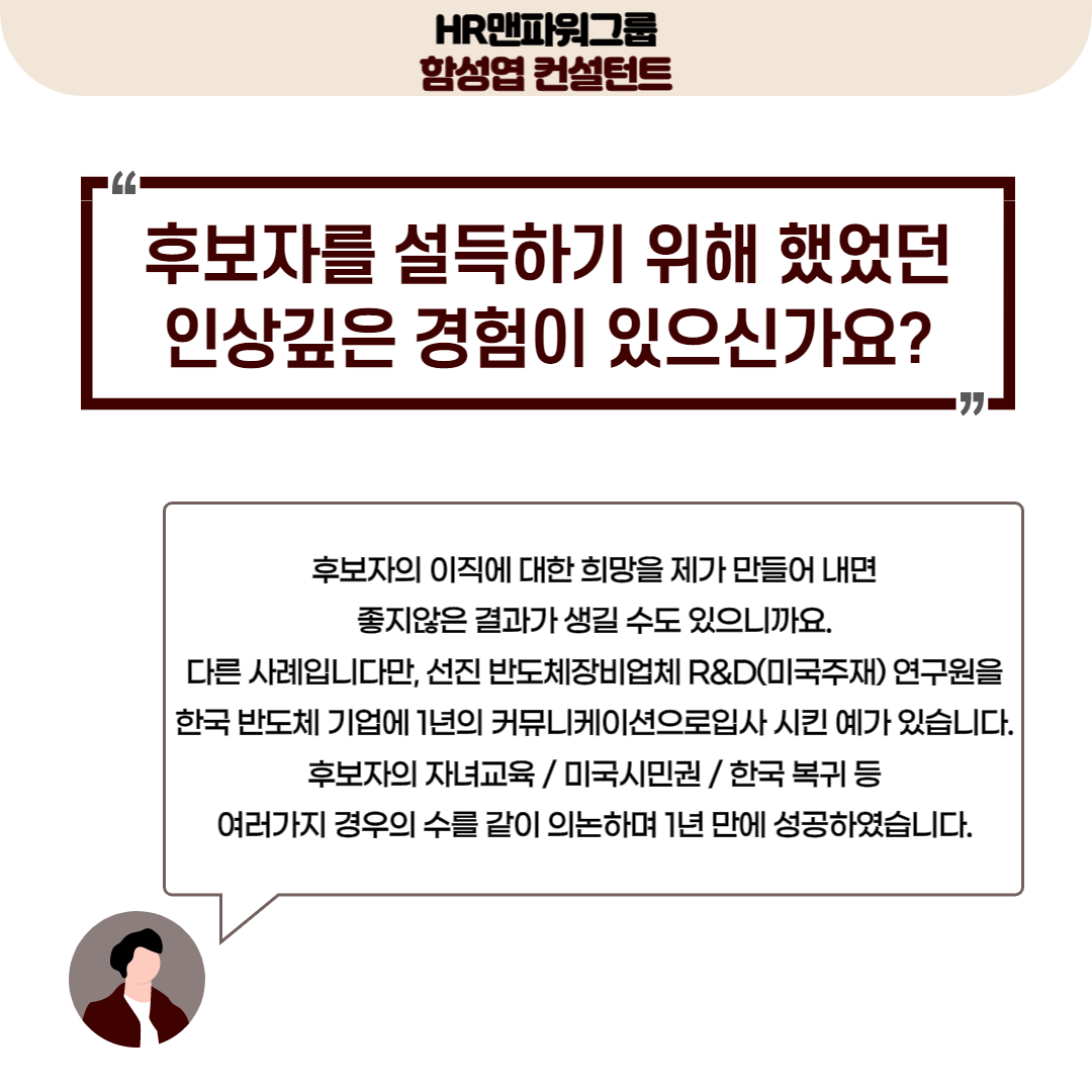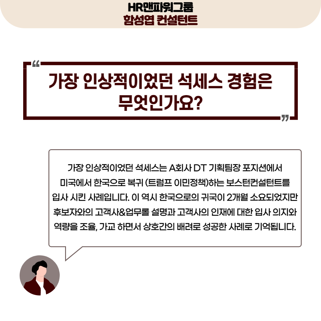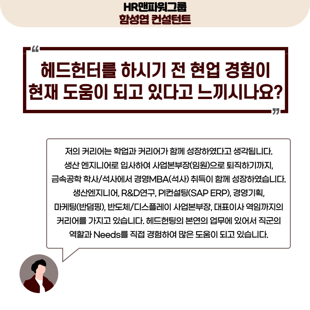 HR맨파워그룹 함성엽 컨설턴트님은 엔지니어링 & 경영컨설팅 전문 헤드헌터로,