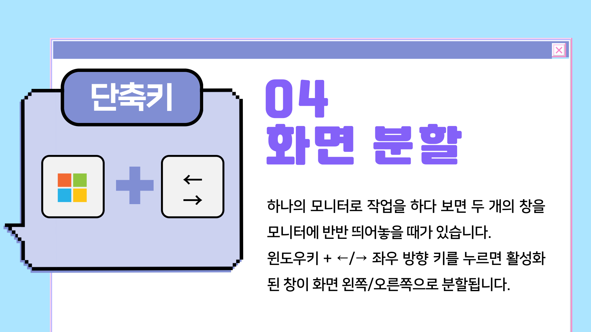 윈도우 단축키 중 꼭 알아야 하는 것만 모았으니 까먹지 말고 사용해 보아요!