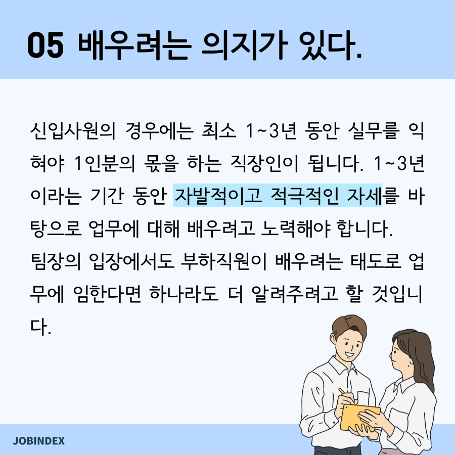 신입사원의 경우에는 상사한테 잘 보이고 싶은 마음이 크기 때문에 '조직에서 이런 사람을 좋아하는구나~'라고 한 번 참고하는 것도 좋을 것 같습니다!