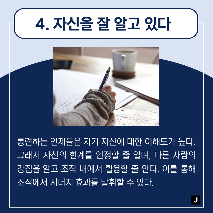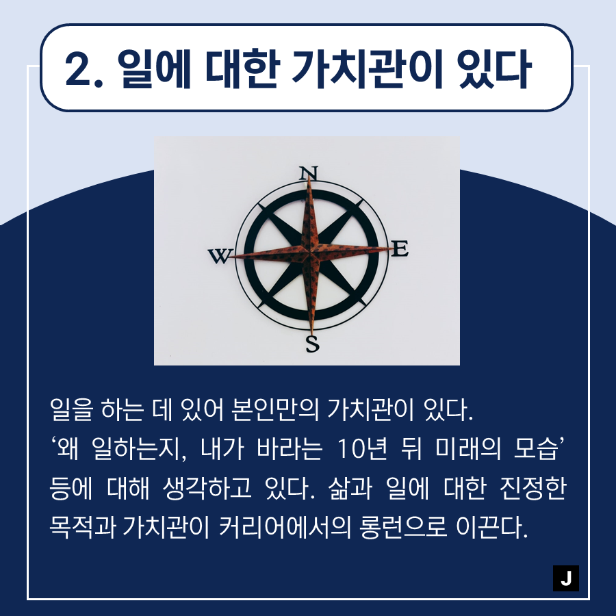 [직장생활] 직장에서 롱런하는 인재들의 특성 7,638 2 3 연차가 쌓였을 때, 직장에서 롱런하는 인재가 되기 위해서는 어떻게 해야 할까요? 그래서 알아본 오늘의 주제는 '직장에서 롱런하는 인재들의 특성'입니다! 😊 경력직 이직은 잡인덱스 JOBINDEX `21.07.08(updated. `21.07.19) 다음글[#9 놓치면 안 될 경력직 채용공고] - 'UX / UI 디자이너' 모음 이전글[헤드헌터 업무지식] 대형 서치펌, 소형 서치펌 어떤 장, 단점이 있나요?
