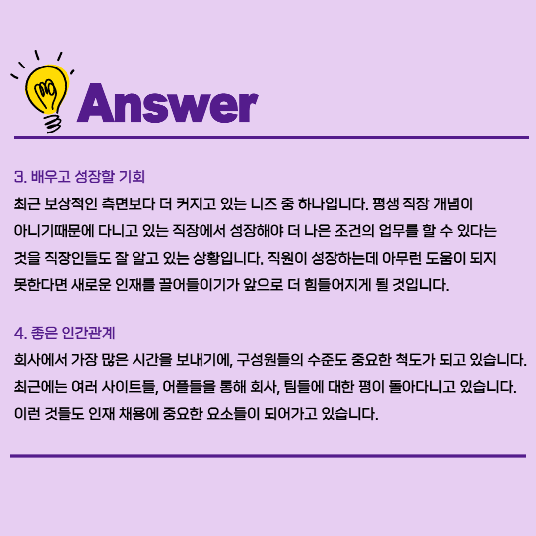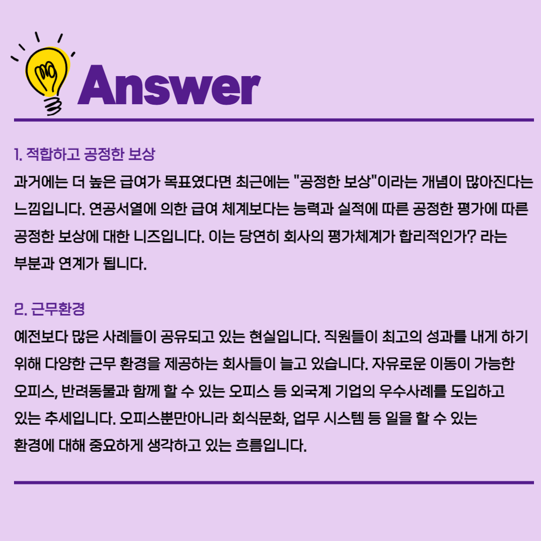 예전과 달리 직장에서의 만족감은 보상만 있는게 아닌 시대가 된 것 같습니다.