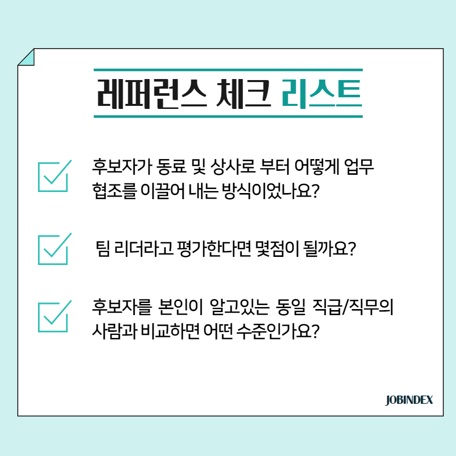 오늘은📌레퍼런스 체크 방법과 📌레퍼런스 체크 시에 무엇을 질문해야 하는지 알아보는 시간을 갖겠습니다. 반대로, 후보자들은 📑레퍼런스 체크 리스트를 보면서 자신을 한번 스스로 평가해보는 시간을 가질 수 있겠죠?
