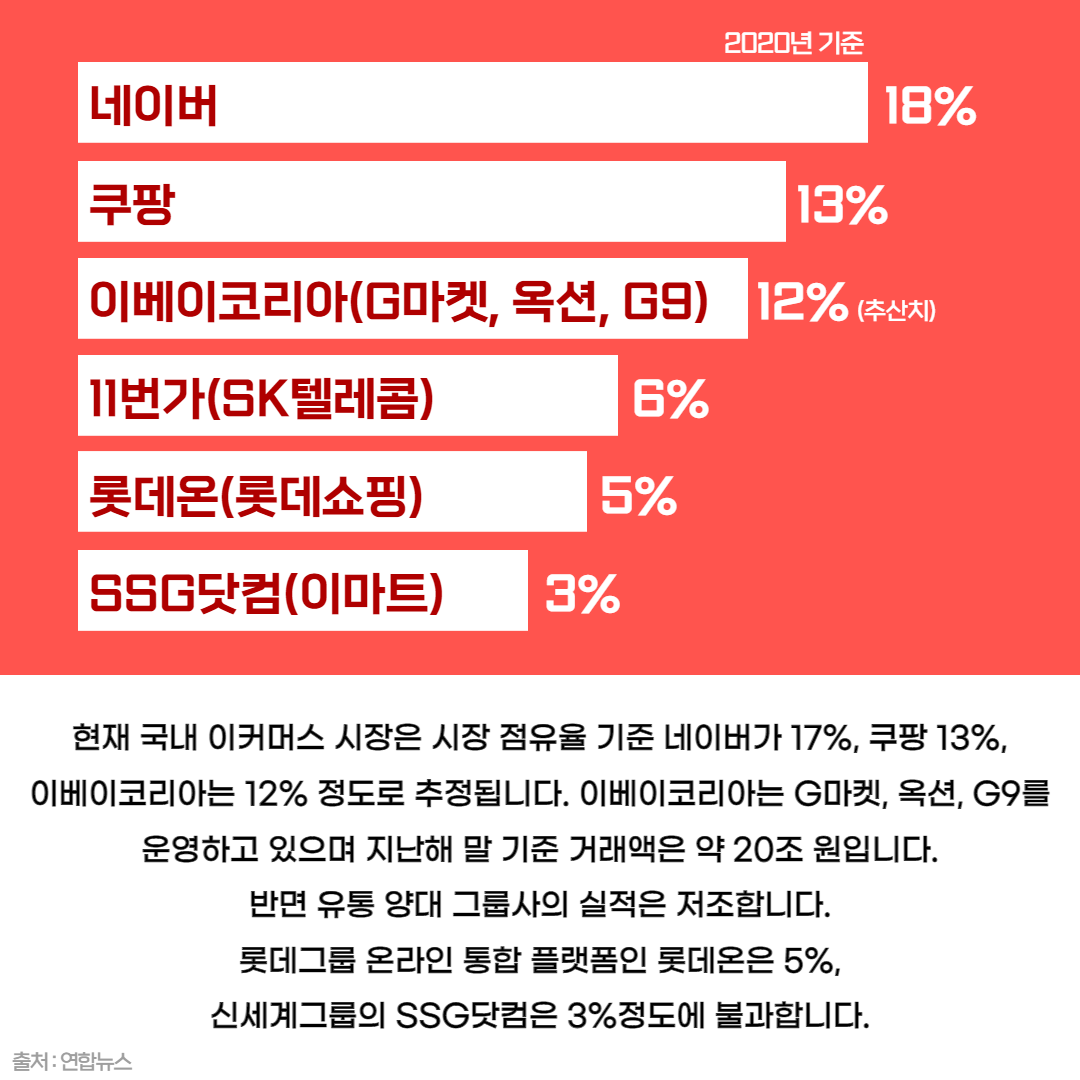 그렇다면 현재 국내 이커머스 시장 점유율 현황은 어떠한가요?
