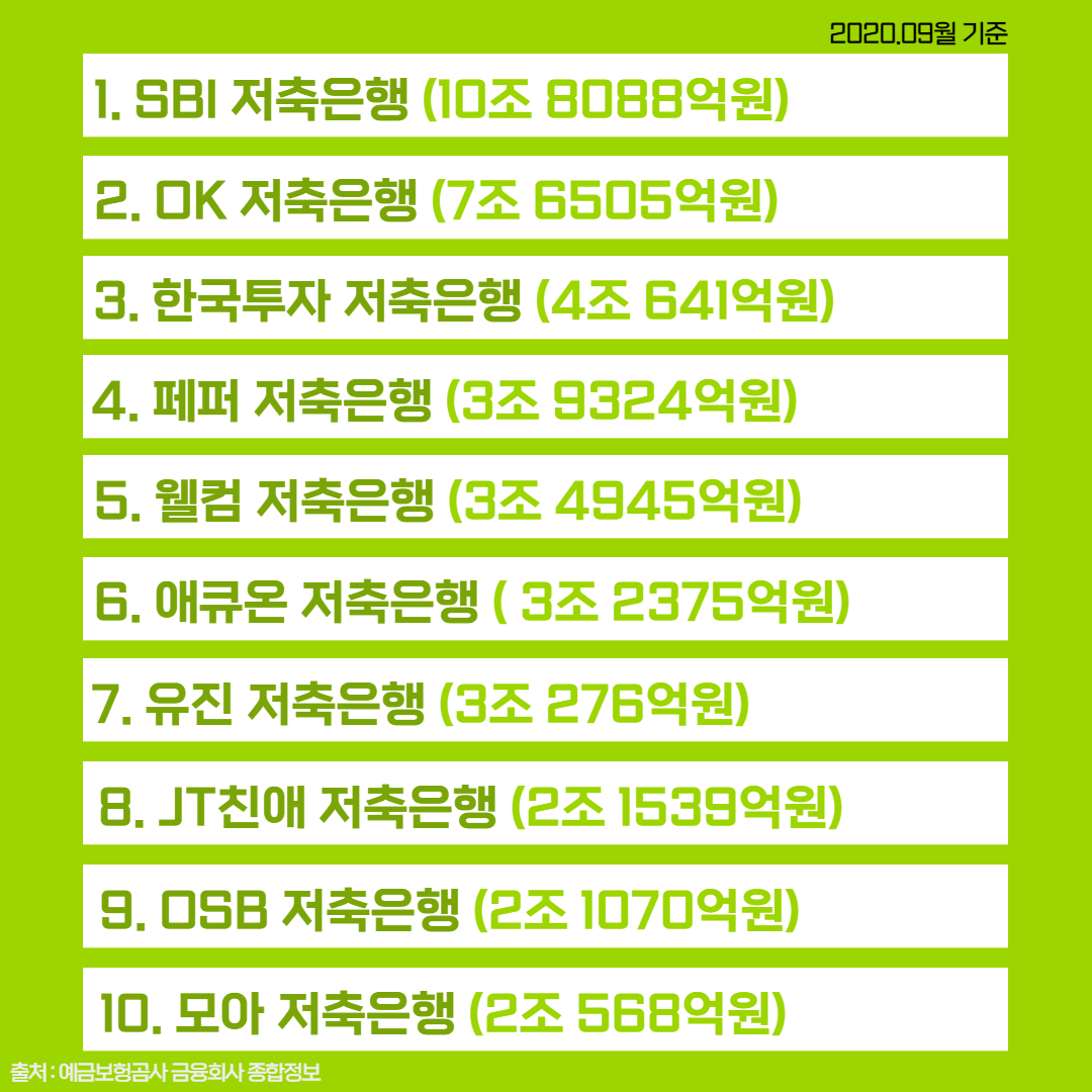 은행권의 대출 규제가 심해지자 저축은행으로 눈길을 돌리는 분들도 많습니다. 그래서 알아 본 2020년도 저축은행 자산 순위는 어떻게 될까요?