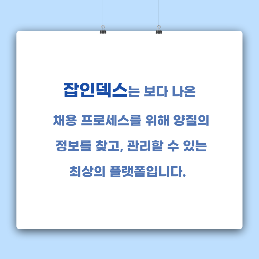 잡인덱스는 보다 나은 채용 프로세스를 위해 양질의 정보를 찾고, 관리할 수 있는 최상의 플랫폼입니다.