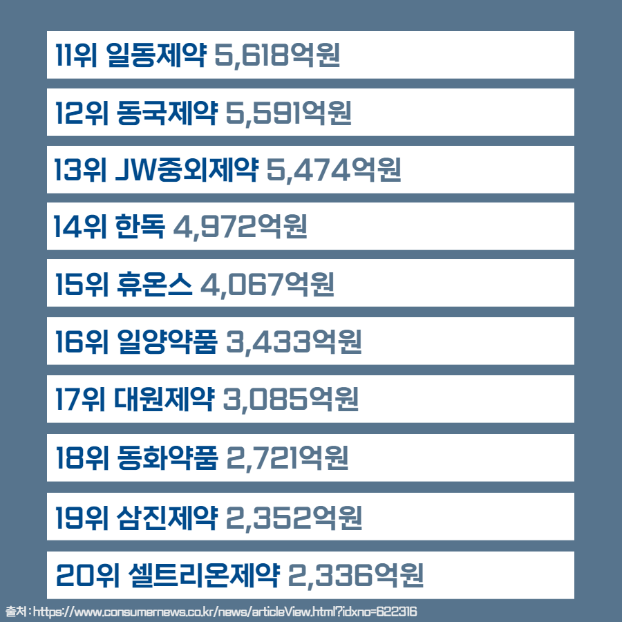 코로나19와 펜데믹 이후 제약회사 매출이 늘었다고 합니다! 그래서 알아본 오늘의 주제는 💊2020년 제약회사 매출 순위💊입니다.