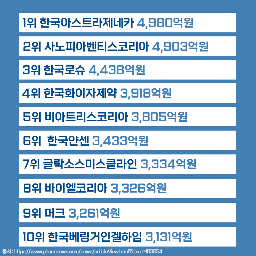 한국에도 다양안 외국계 제약회사가 있는데요, 그래서 준비한 오늘의 주제는 💊2020년 외국계 제약회사 매출 순위💊입니다.