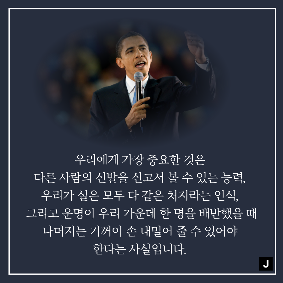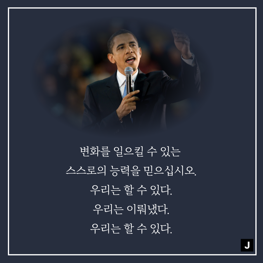 버락 오바마의 연설은 다양한 인종과 종교를 뛰어넘어 누구나 공감할 수 있는 희망을 이야기합니다.