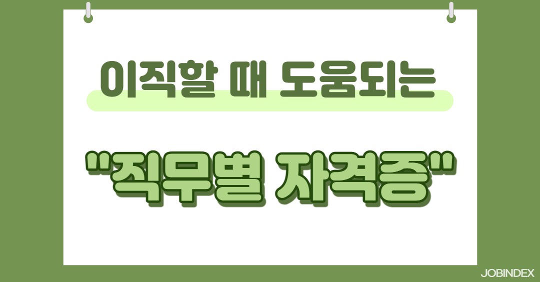 직무가 다양해지고 있듯이, 각 직무별로 자격증 또한 다양해지고 있는데요, 그래서 준비한 이번 주제는 "이직할 때 도움이 되는 직무별 자격증"입니다.