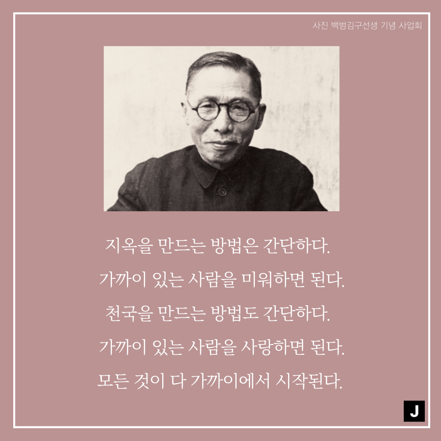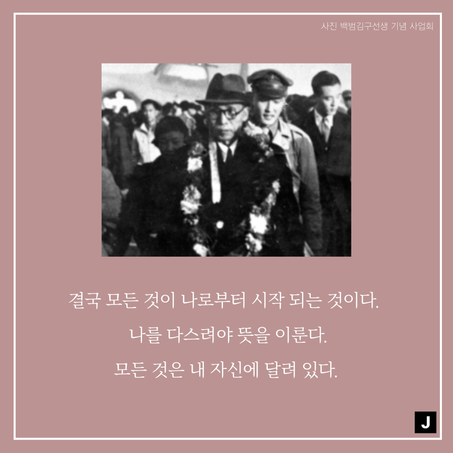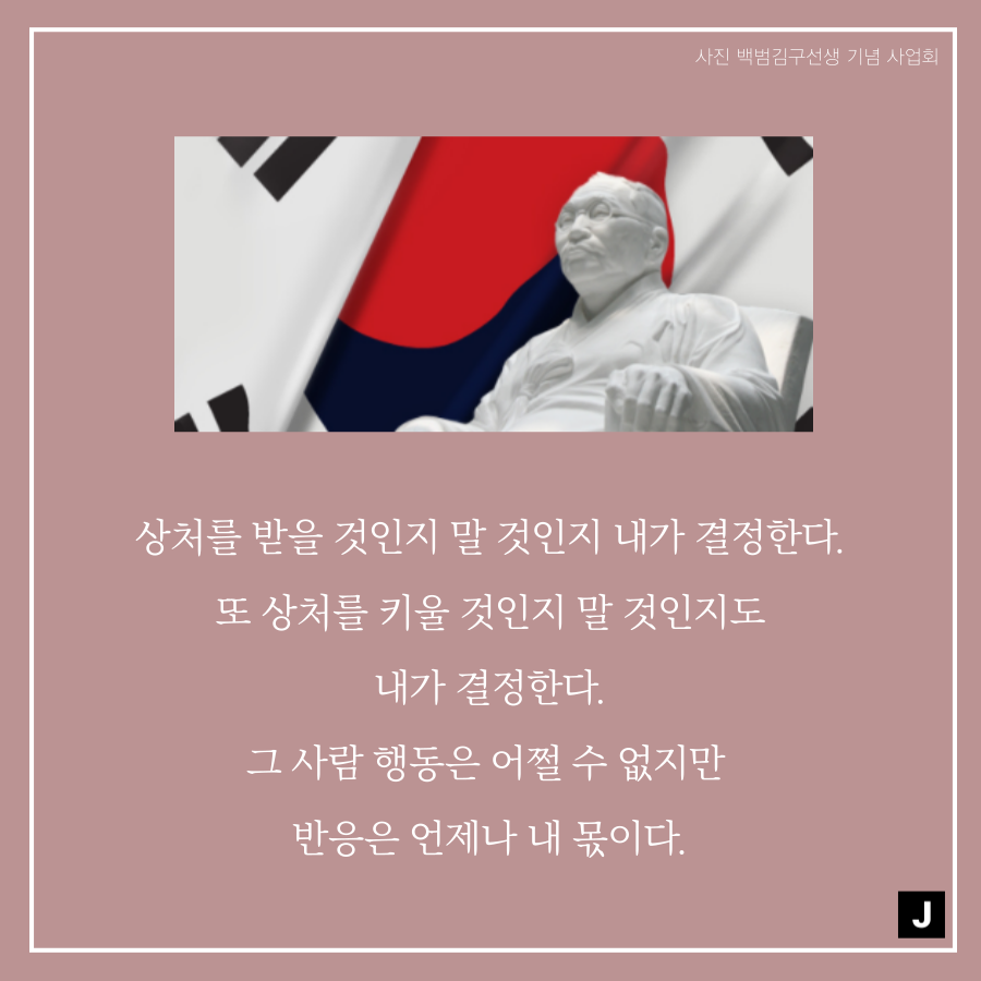 이렇듯 마음가짐은 상대방을 생각하는 기준이 되기도 하며, 자신이 어떤 마음을 가지냐에 따라 행동을 하기 때문에 자신을 바라보는 기준과 방향이 될 수도 있습니다. 그래서 준비한 주제는 "마음과 관련된 백범 김구 선생님의 조언"입니다.