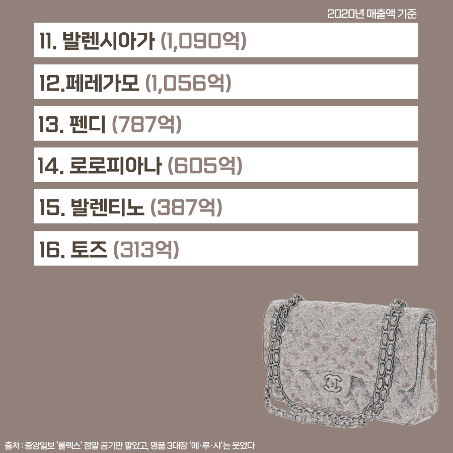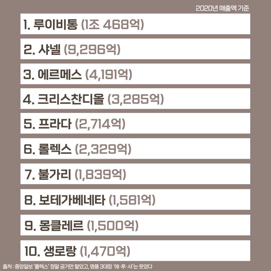 명품 브랜드 국내 매출액 순위