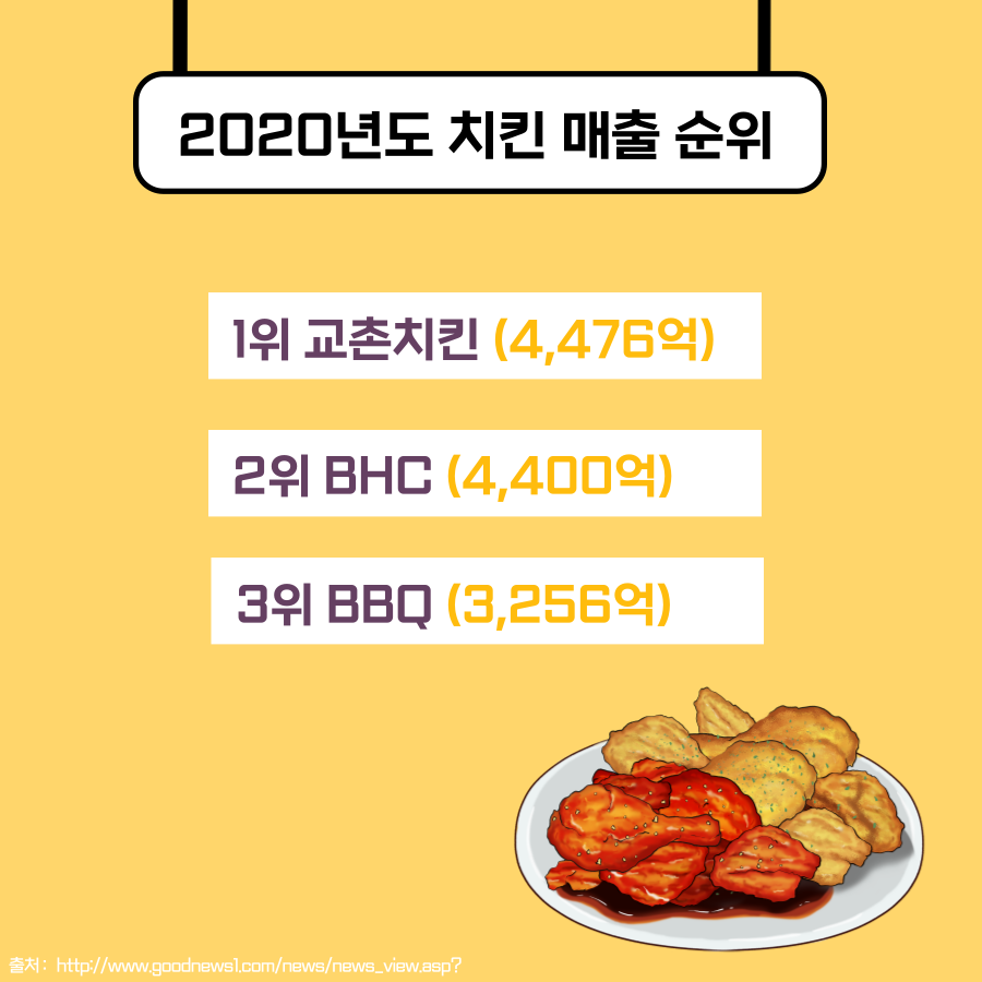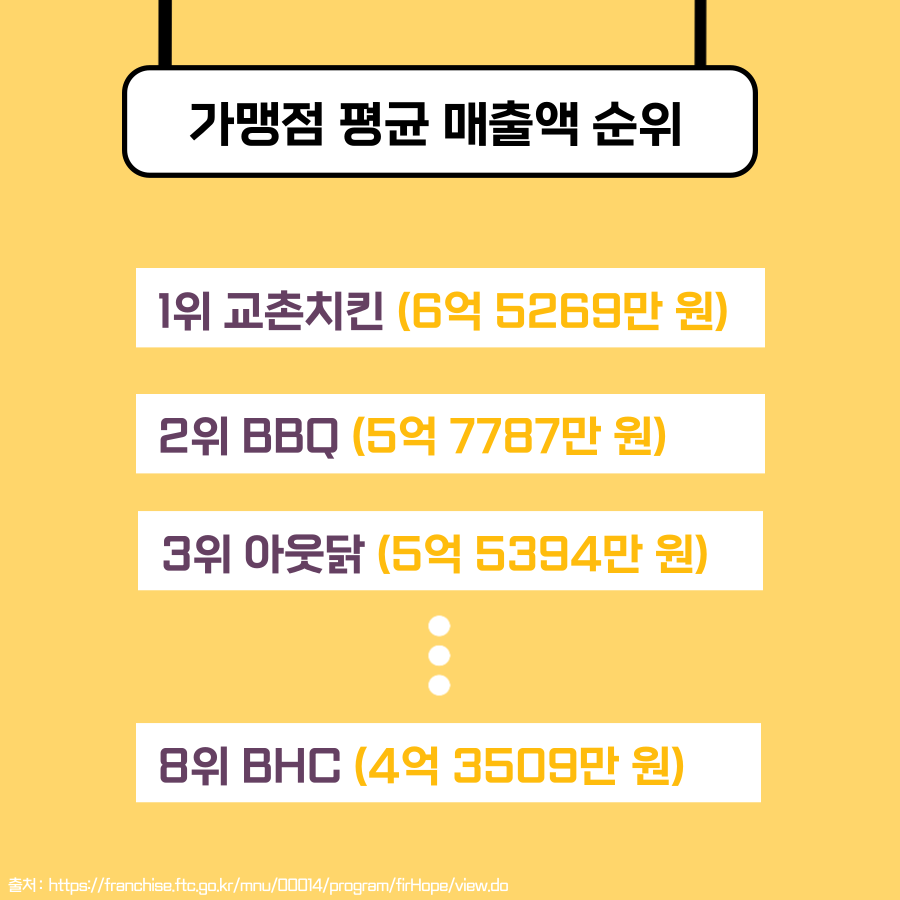 BBQ, BHC 치킨은 지난해 초복과 비교해 매출이 늘었다고 하는데요, 그래서 준비한 이번 주제는 🍗치킨 브랜드 매출액 순위🍗입니다.