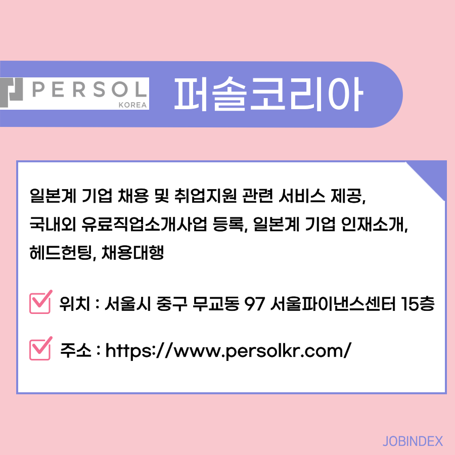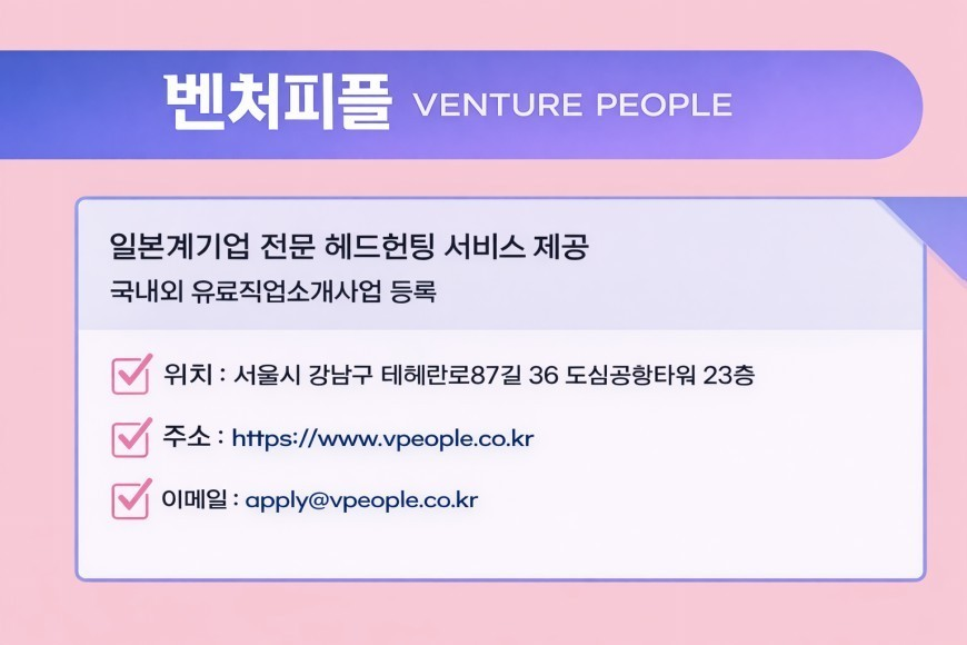 [서치펌 탐방] 일본계 회사 전문 서치펌 알아보기 7,735 1 1 영어를 잘하는 후보자 풀을 가진 곳은 많은데 상대적으로 일본회사를 대상으로 후보자 풀을 많이 가진 회사는 드문것 같습니다. 일본계 회사들을 대상으로 전문성을 가진 서치펌은 어디가 있을까요? ☞ 관련 Q&A 보러가기 #일본계기업#전문서치펌 `21.07.29(updated. `26.02.02) 다음글재택근무러를 위한 생산성 향상 방법 이전글2021 우리나라 컴퓨터 공학과 순위