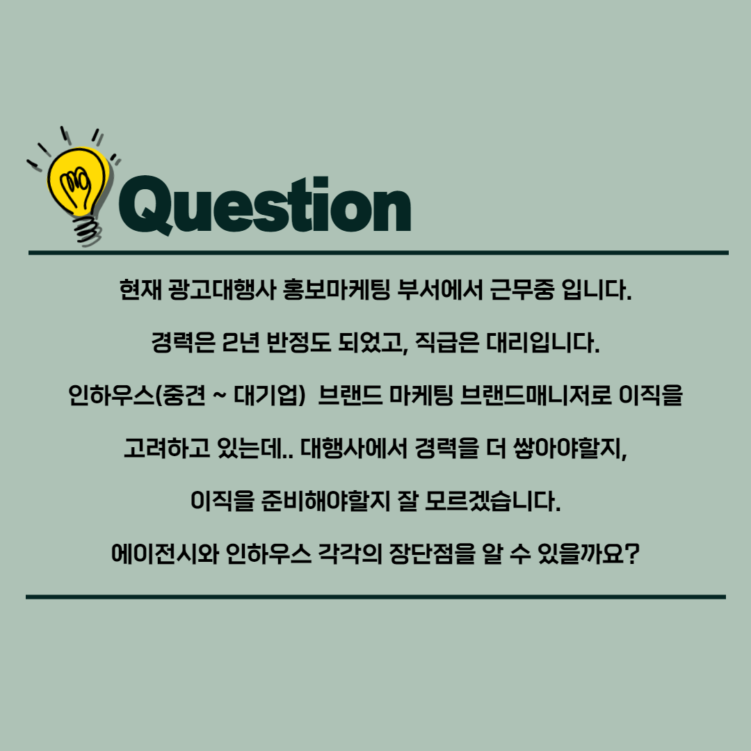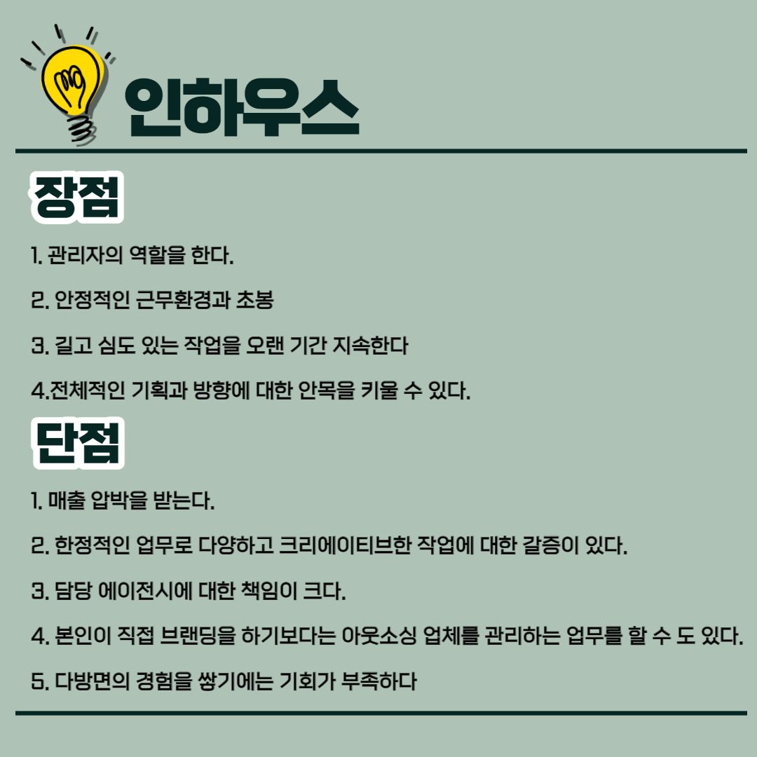 에이전시에서 인하우스로 이직 시, 장단점은 무엇이 있나요?